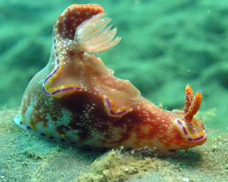 This one is really neat and is often called a kangaroo nudi. Notice that it has a flap in the back that flips up by the gills.