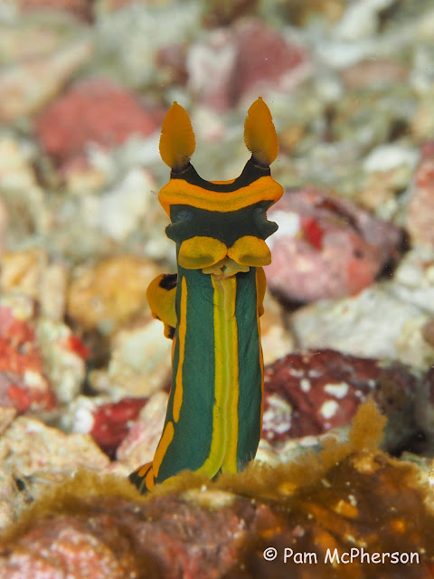 We did the Jetty and then Black Rhino. They were awesome peaceful great visibility no current dives. I felt good. My mask was just right. My buoyancy was just right. I saw some great stuff and a few nudis, but only one of them may be new.